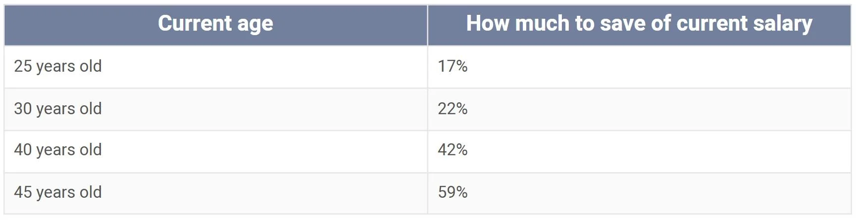 To aim for an income of 75% of your final salary, the following contributions must be made if you start from a zero base: